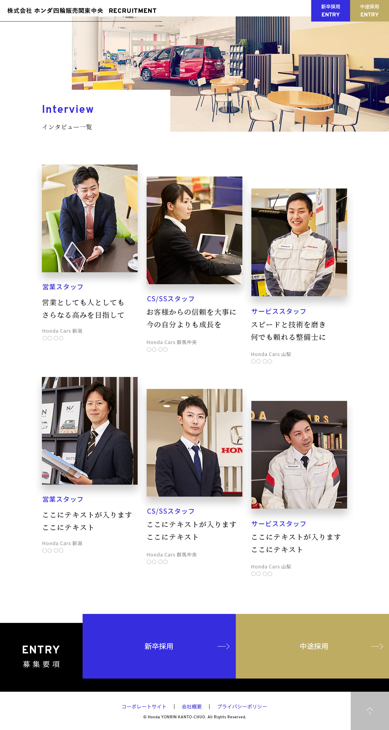 - 新卒および中途採用を目的とした、求職者向けの採用サイト。